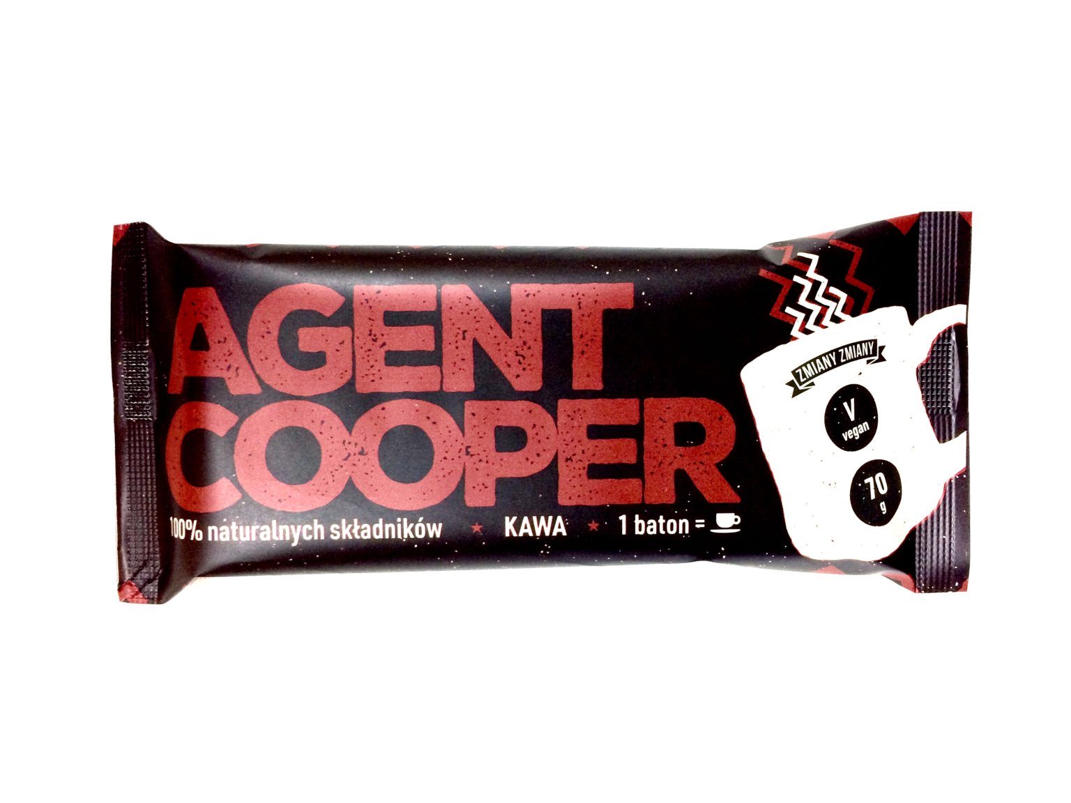 Dlaczego warto wybrać Agent Cooper? Zawiera 44 mg kofeiny – naturalny zastrzyk energii 100% naturalnych składników – bez konserwantów i sztucznych dodatków Bezglutenowy, wegański i bez laktozy – odpowiedni dla różnych diet Bez dodatku cukru – naturalna słodycz z owoców RAW – przetwarzany mechanicznie, bez obróbki termicznej Idealna alternatywa dla kawy w biegu Pobudzenie w naturalnej formie Baton Agent Cooper to doskonała opcja na poranne doładowanie, przed treningiem czy w trakcie intensywnego dnia. Ciesz się smakiem prawdziwej kawy w wygodnej, odżywczej formie! Sięgnij po Agenta Coopera i poczuj moc espresso zamkniętego w batonie!