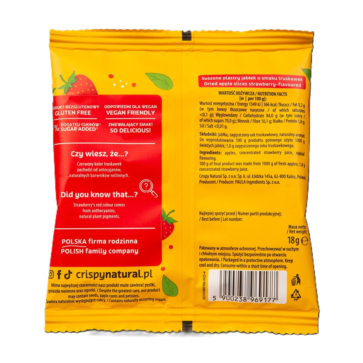 Jabłko o smaku truskawek - Suszone chipsy z jabłek (18g)