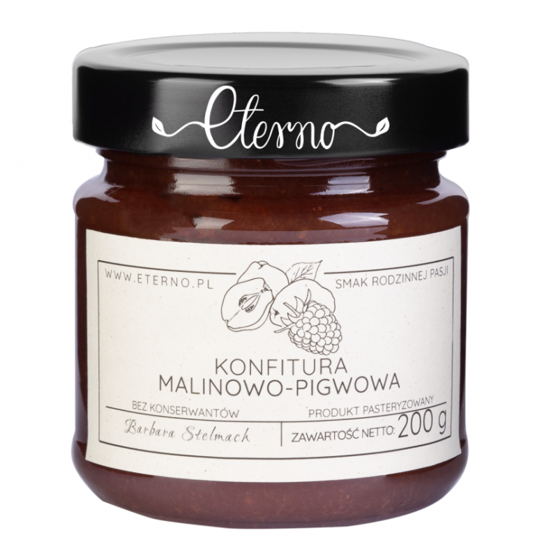 Przepyszna konfitura malinowo- pigwowa powstała z zapisków rodzinnych. Prawdziwa skarbnica witamin, świetny dodatek do herbaty i deserów.