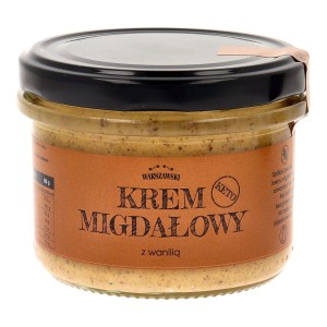 Krem na bazie pasty migdałowej z dodatkiem wanilii. Produkt zawiera substancje słodzące i naturalnie występujące cukry.