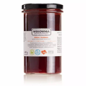 Składniki: burak 47,4%, woda, sok jabłkowy (z zagęszczonego soku jabłkowego), nektar z czarnych porzeczek (sok z czarnych porzeczek z zagęszczonego soku z czarnych porzeczek (25%), cukier, regulator kwasowości – kwas cytrynowy, naturalny aromat czarnej porzeczki), koncentrat buraczany (sok z ekologicznych buraków ćwikłowych 83%, ekologiczny cukier trzcinowy, ekologiczny ocet jabłkowy, naturalna sól kamienna kłodawska), sól pieprz. Możliwa obecność selera.