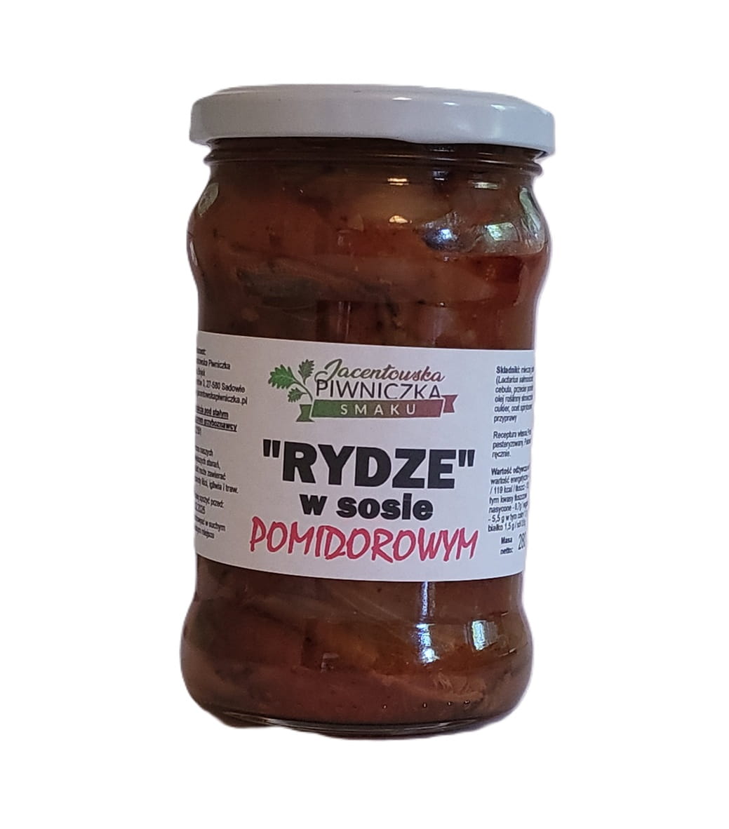 Mleczaj jodłowy duszony w aromatycznym sosie pomidorowym cebulką. Sprawdzi się jako sos do kaszy, ryżu, ziemniaków, makaronu. Mogą też stanowić ciekawy dodatek do pizzy czy kanapek.